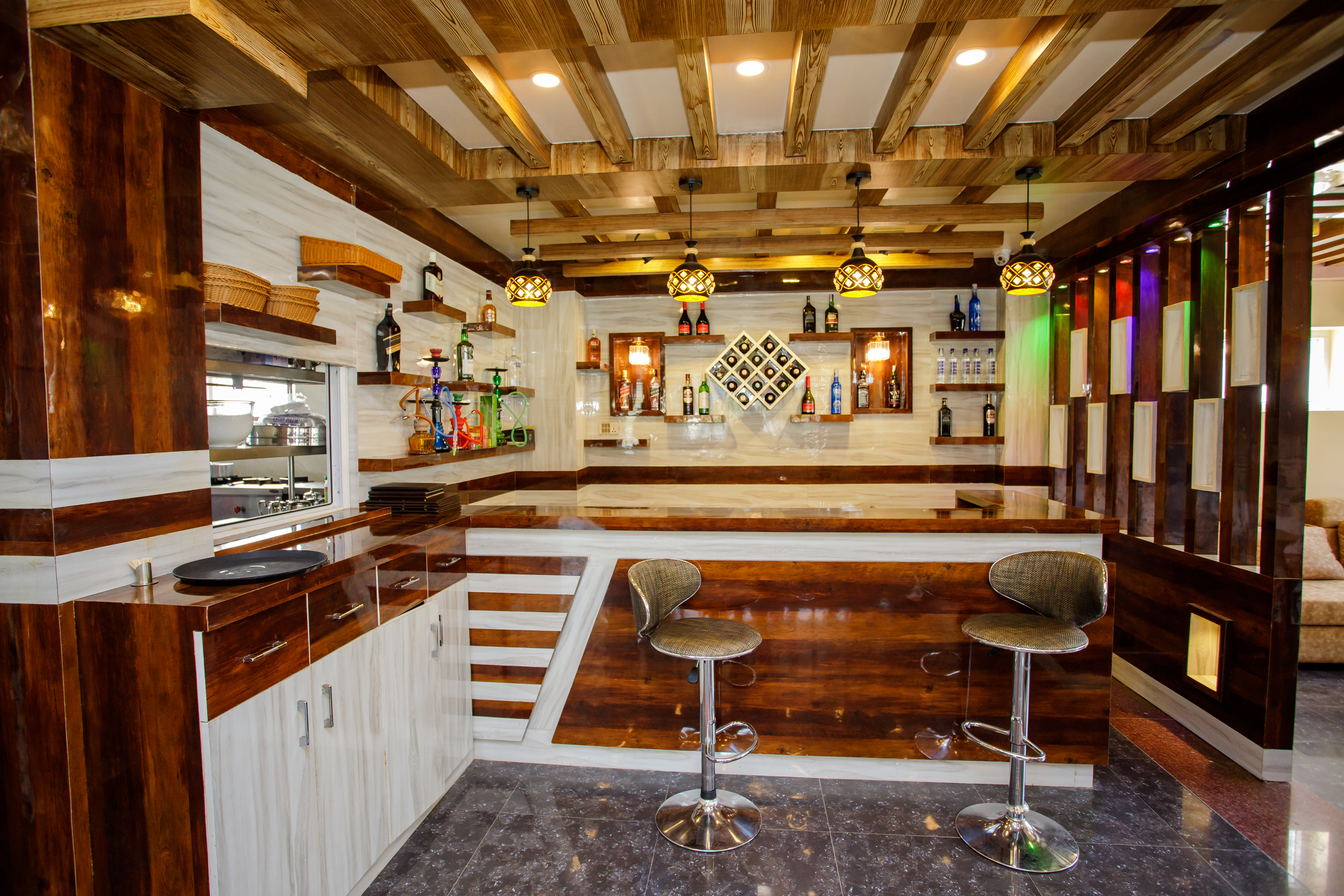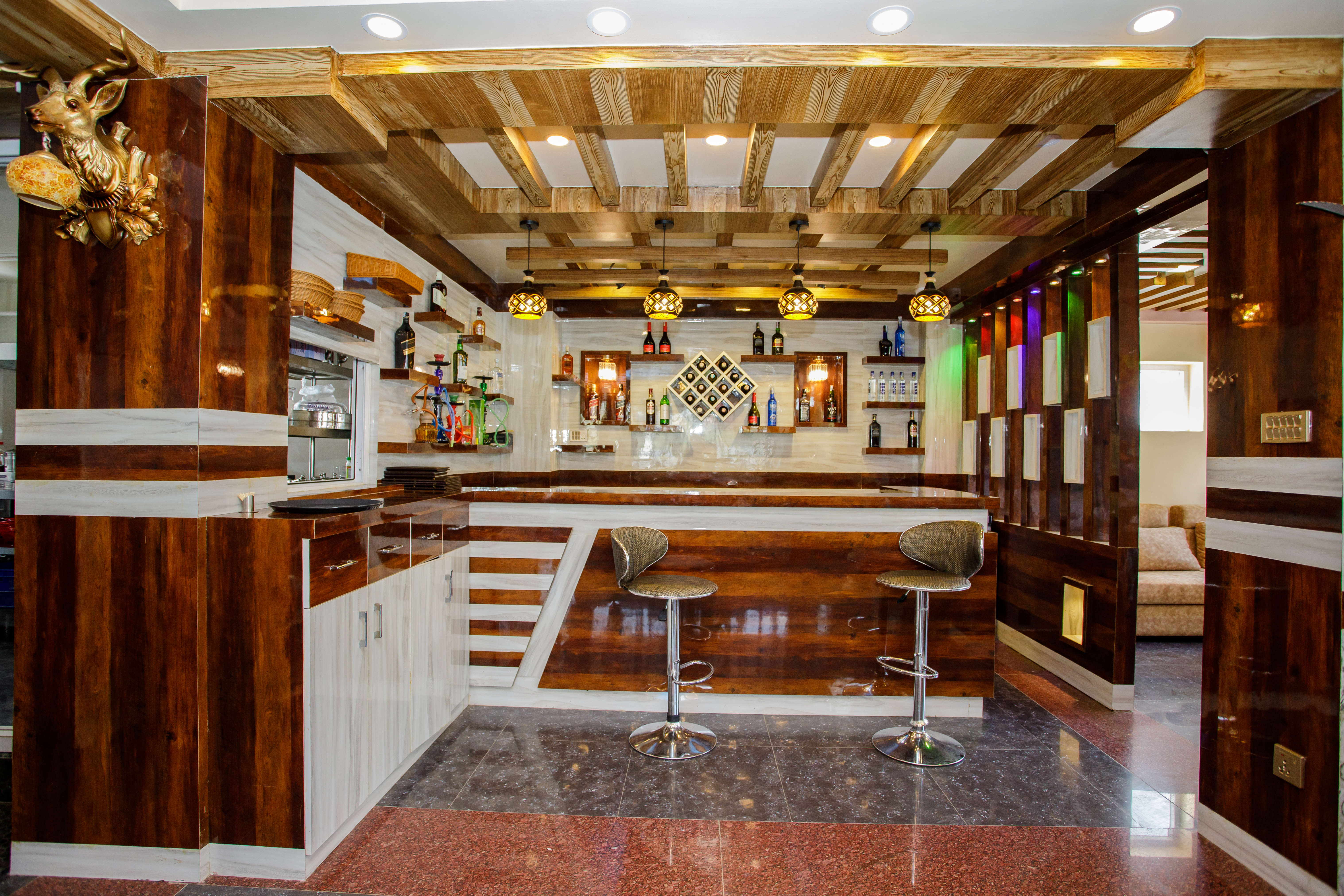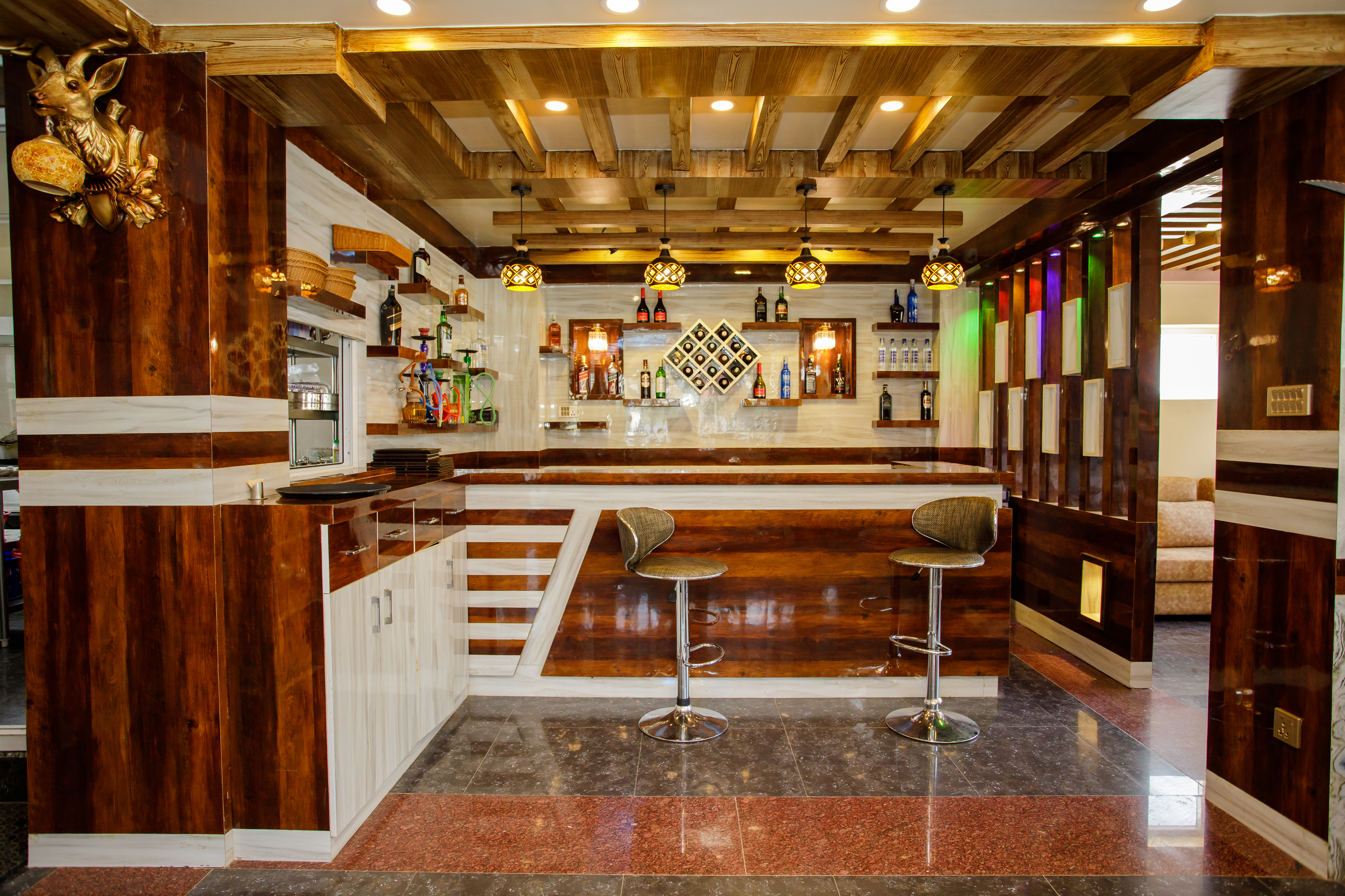 The bar has a large selection of drinks, including both domestic and imported beverages. The bartender has been well trained to provide you with a delicious drink. Simply place your order and enjoy your drink while reflecting on the goodness of life.